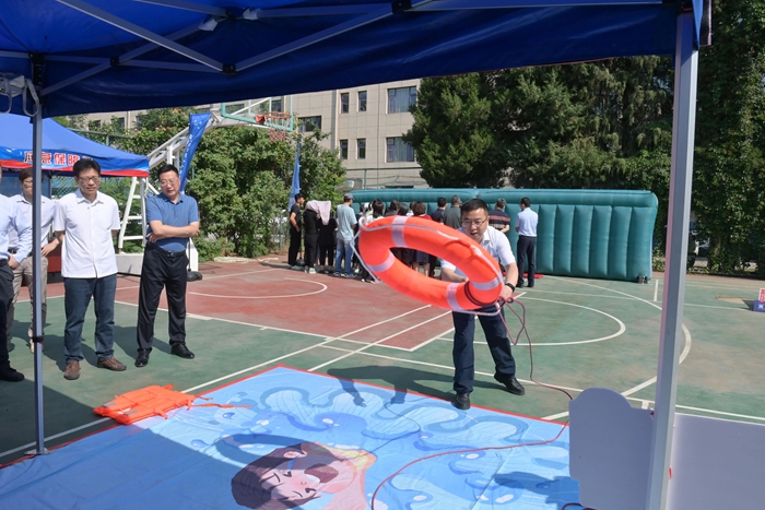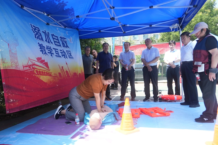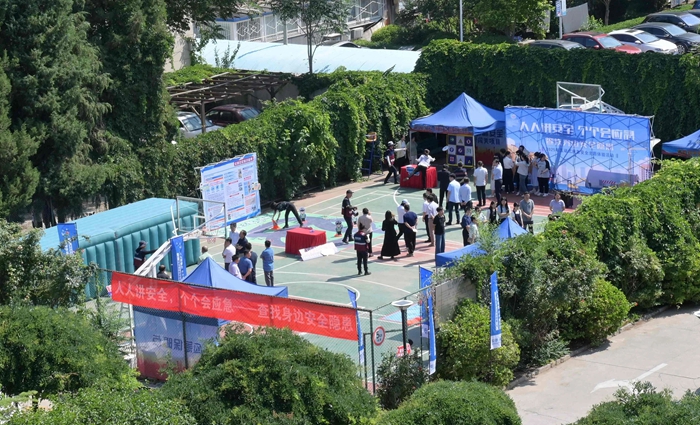 演練結(jié)束后,舉辦方在大廈籃球場開啟安全咨詢體驗活動。整個活動共設置了6個項目,分別為擁擠踩踏應急處置體驗區(qū)(充氣帳篷)、消防隱患排查試驗區(qū)、電動車電池穿刺爆燃體驗裝置、溺水自救互救教學培訓區(qū)、醉酒交通AR模擬體驗、安全標志互動區(qū)?;顒蝇F(xiàn)場氣氛熱烈,盡管天氣炎熱,但絲毫沒有減弱大家體驗掌握應急技能的熱情。