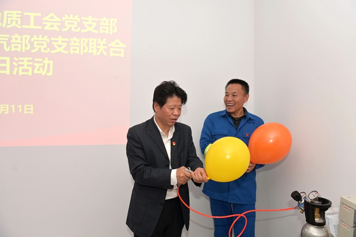 在交流中,北普公司包裝氣部黨支部書記王紹武介紹了工廠生產(chǎn)運(yùn)行情況,并重點(diǎn)匯報(bào)了包裝氣黨支部全體黨員為高質(zhì)量完成此次服務(wù)保障任務(wù),及時(shí)成立臨時(shí)黨支部,強(qiáng)化黨建引領(lǐng),發(fā)揮戰(zhàn)斗堡壘作用;黨員同志們從生產(chǎn)、運(yùn)輸、現(xiàn)場(chǎng)操作,到落實(shí)安全流程、人員培訓(xùn),始終發(fā)揮先鋒模范作用,以硬核擔(dān)當(dāng)帶領(lǐng)一線骨干,把好操作關(guān)、守好安全線,最終圓滿完成保障任務(wù)的感人經(jīng)歷。中國(guó)能源化學(xué)地質(zhì)工會(huì)黨支部的黨員同志們還在現(xiàn)場(chǎng)人員指導(dǎo)下,親手進(jìn)行氣球充裝,親身感受重大活動(dòng)服務(wù)保障中的緊張氛圍。